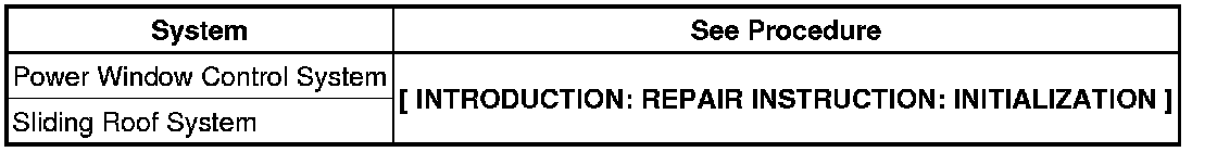 When disconnecting the cable from negative (-) battery terminal, initialize the following systems after the cable is reconnected.