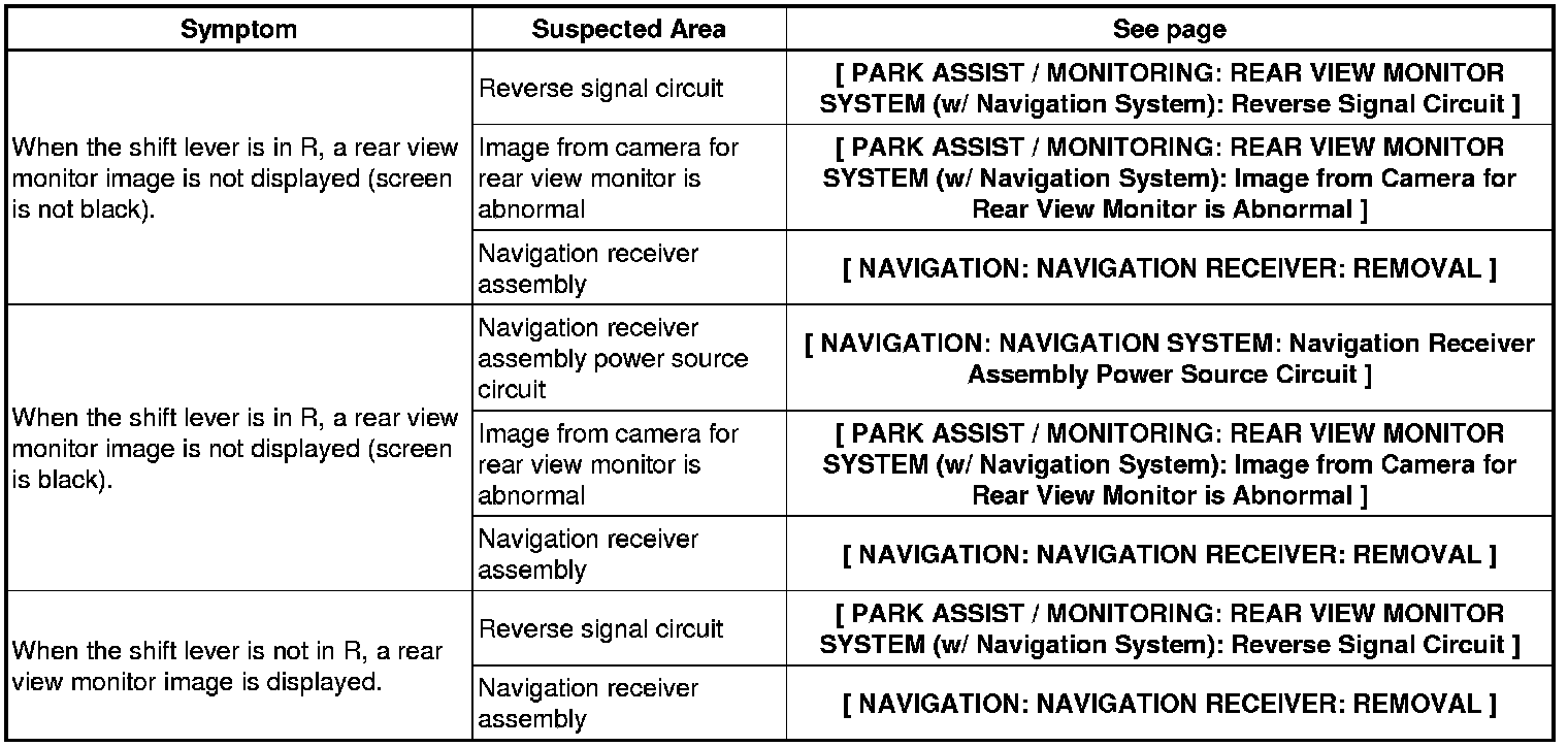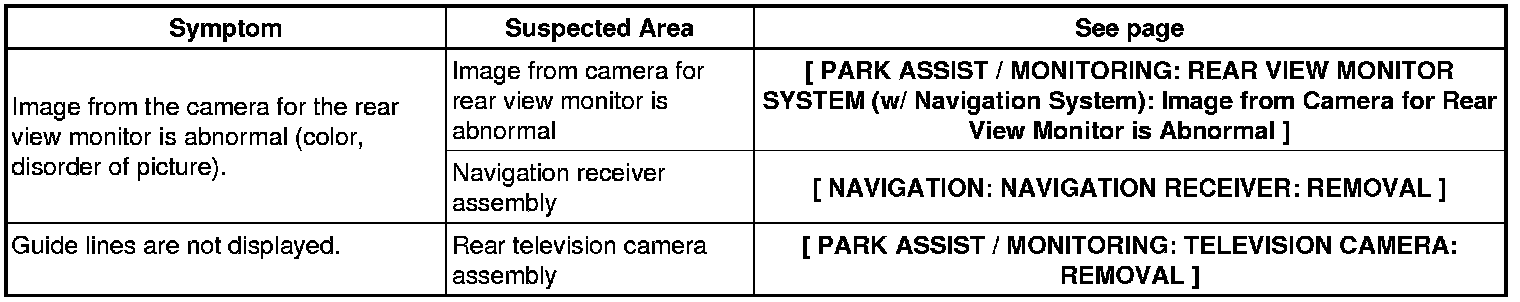PARK ASSIST / MONITORING: REAR VIEW MONITOR SYSTEM (w/ Navigation System): PROBLEM SYMPTOMS TABLE