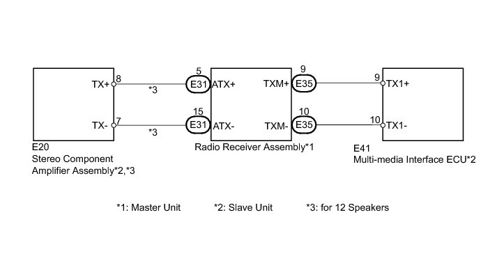 (a) Referring to the AVC-LAN wiring diagram below, check the AVC-LAN circuit between the multi-media interface ECU and the component shown by the sub-code.