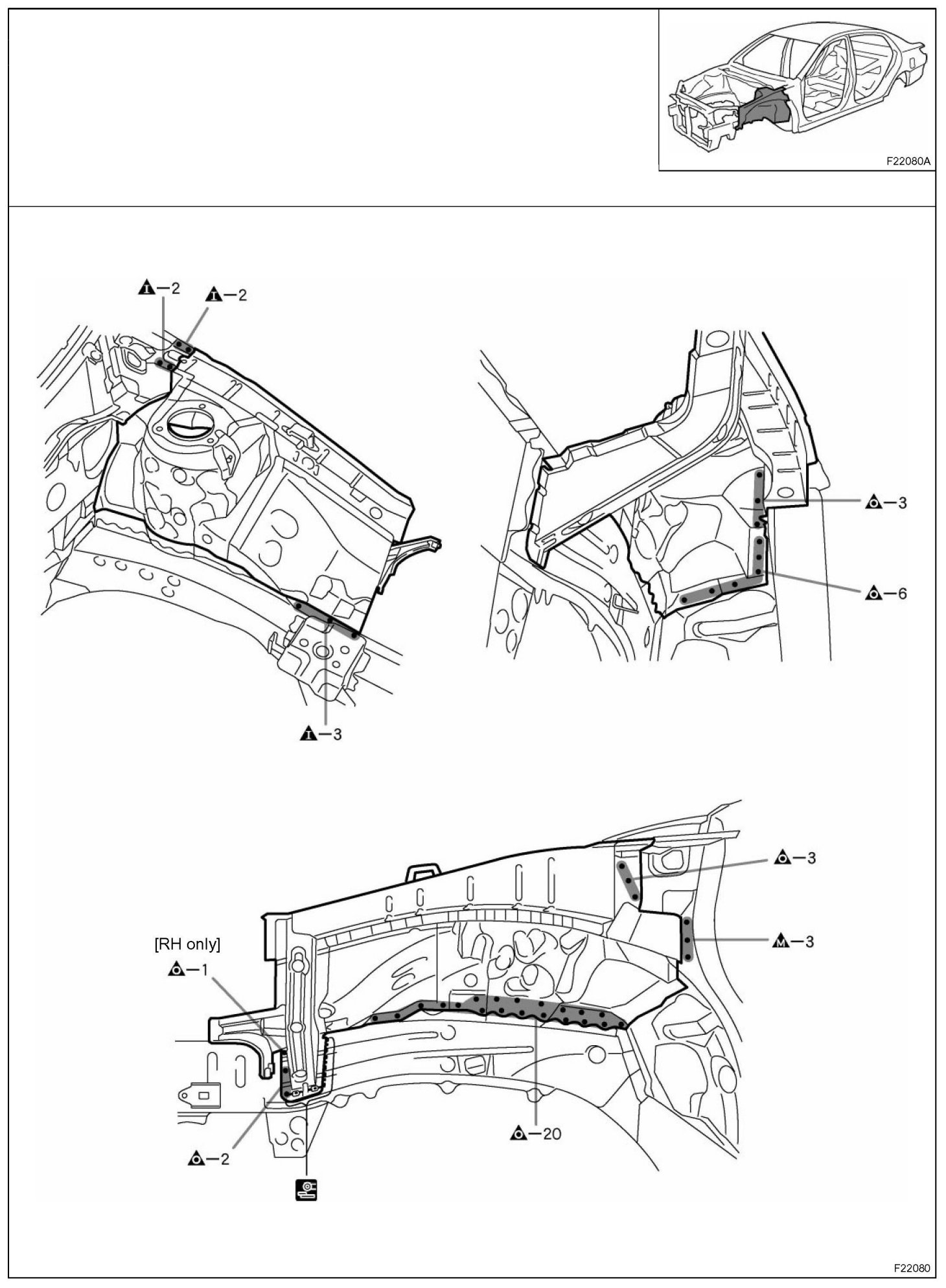 - After welding, apply body sealer and under-coating to the corresponding parts.