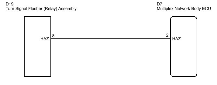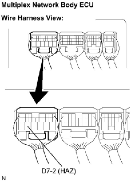 (b) Disconnect the multiplex network body ECU (D7) connector and turn signal flasher assembly connector.