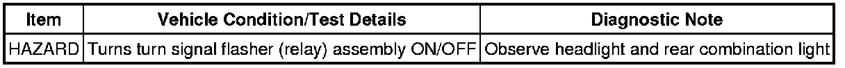 Confirm that the hazard warning light is not set to OFF and the hazard warning light is operating normally before performing the following inspections.