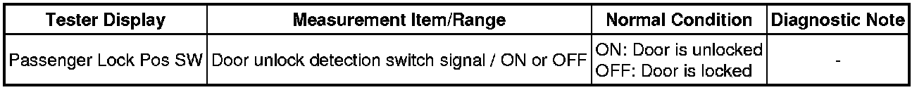 DOOR LOCK: POWER DOOR LOCK CONTROL SYSTEM: Front Passenger Side Door UNLOCK Detection Switch Circuit