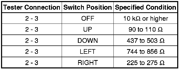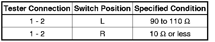 (a) Select "L" on the left/right adjustment switch: Check the switch resistance.