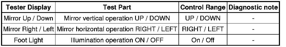 MIRROR: POWER MIRROR CONTROL SYSTEM (w/ Memory): DATA LIST / ACTIVE TEST