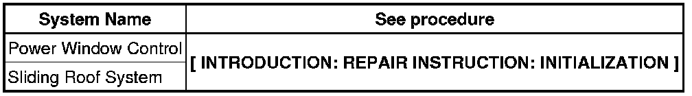 When disconnecting the negative (-) battery terminal, initialize the following systems after the terminal is reconnected.