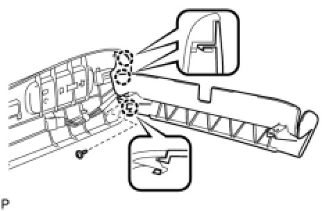 (d) Disengage the 2 claws and remove the front seat cushion shield assembly.