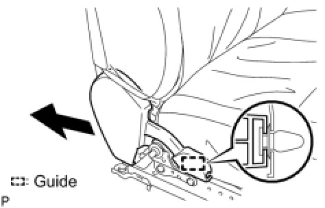 (c) Separate the guide and remove the front seat cushion inner shield as shown in the illustration.