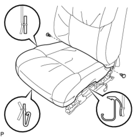 (d) Disengage the hooks and remove the separate type front seat cushion cover with pad.