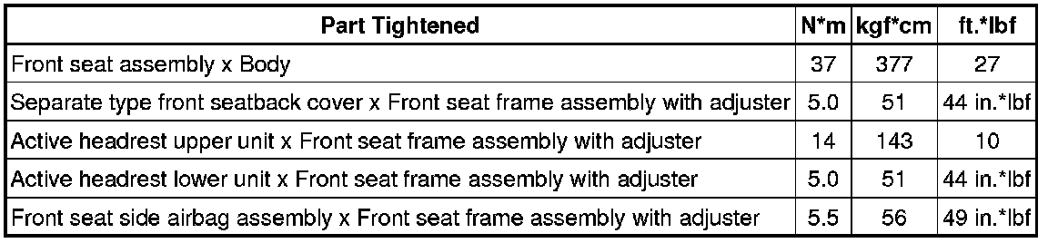 SERVICE SPECIFICATIONS: SEAT: TORQUE SPECIFICATIONS