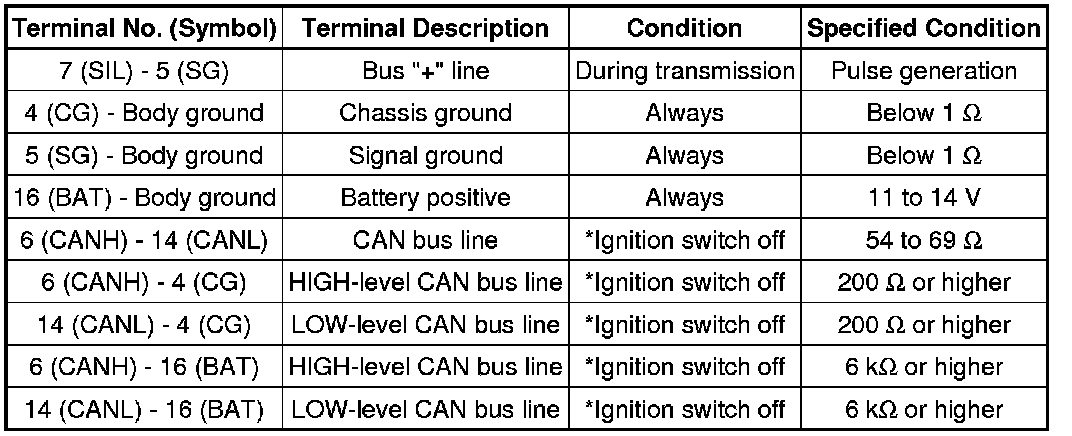 *: Before measuring the resistance, leave the vehicle as is for at least 1 minute and do not operate the ignition switch, any other switches or the doors.