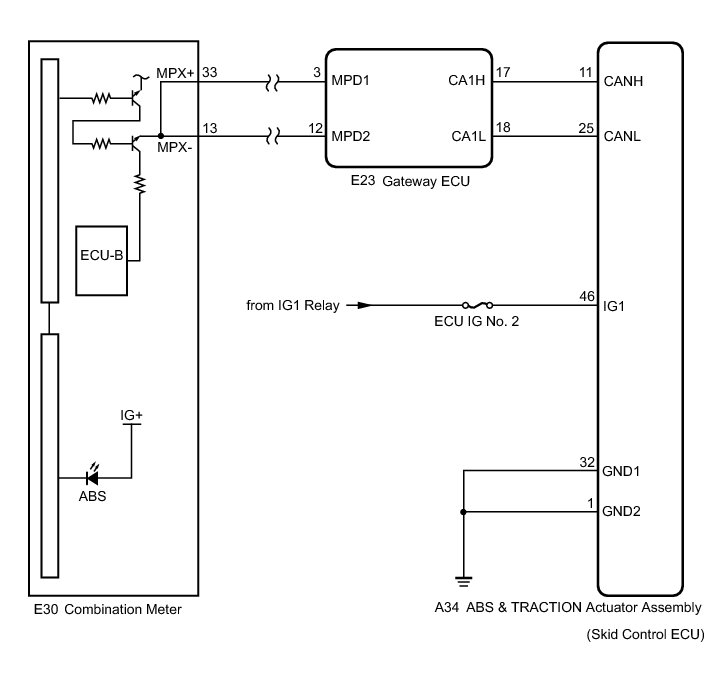 * There is an open in the harness between the combination meter and the skid control ECU.