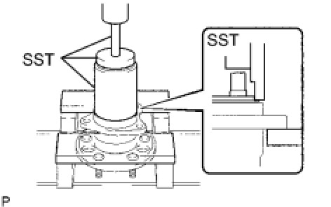 (c) Using SST and a press, install the skid control sensor to the axle hub.