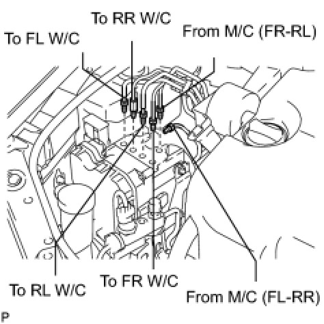(c) Using SST, connect each brake tube to correct positions of the actuator with bracket as shown in the illustration.