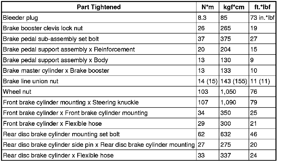 SERVICE SPECIFICATIONS: BRAKE: TORQUE SPECIFICATIONS