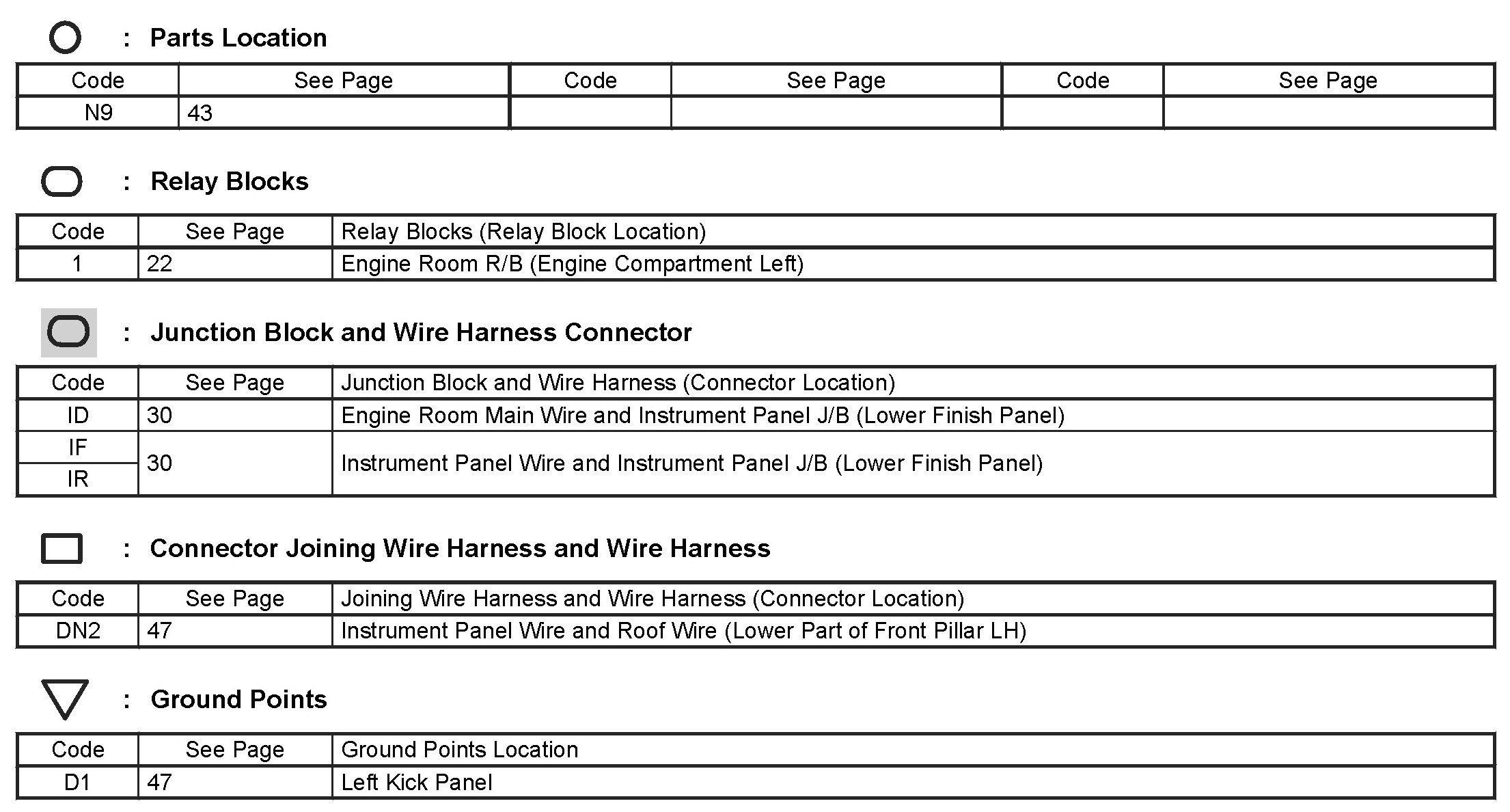 Locations: The locations of components, connectors, ground points, and splices referred to within these diagrams can be found at Vehicle Locations. Locations