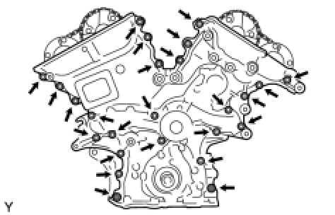 (a) Remove the 23 bolts and 2 nuts as shown in the illustration.