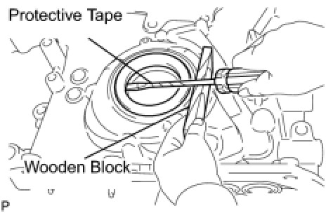 (b) Remove the timing chain cover by prying between the timing chain cover and cylinder head or cylinder block with a screwdriver.