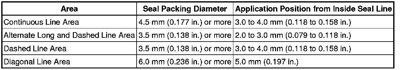 * Install the oil pan within 3 minutes after applying seal packing.