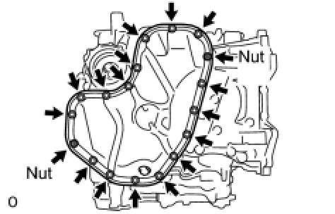 (c) Install the No. 2 oil pan with the 16 bolts and 2 nuts.