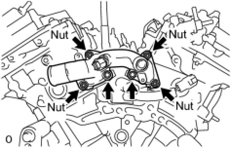 (b) Install the water outlet with the 2 bolts and 4 nuts.