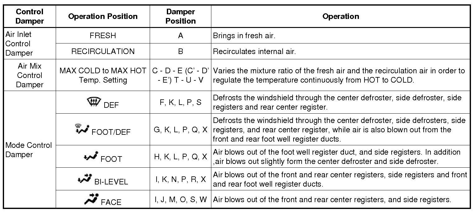 2. MODE POSITION AND DAMPER OPERATION