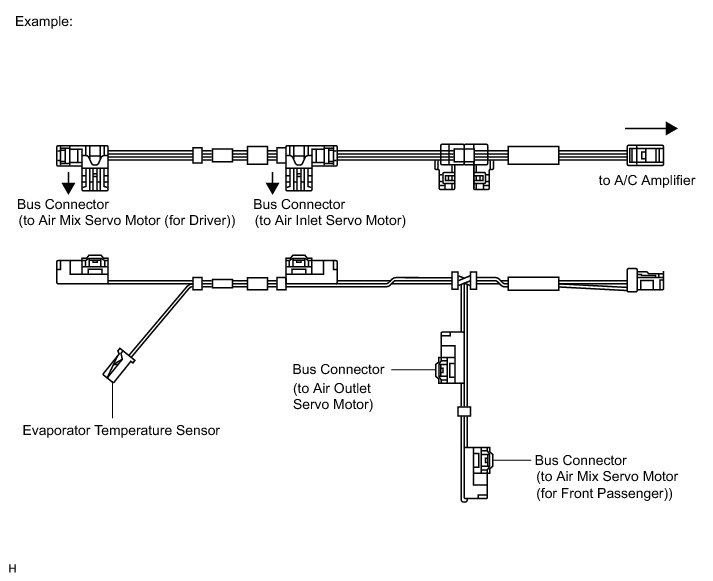 (a) A bus connector is used in the wire harness connection that connects the servomotor from the air conditioning amplifier.