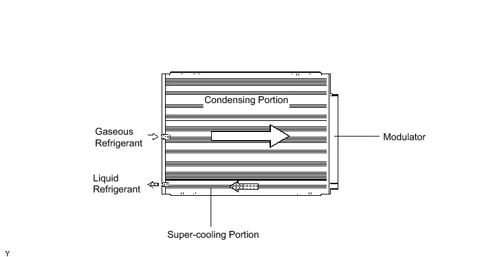 (a) The condenser consists of two cooling portions: a condensing portion and a super-cooling portion, and also a gas-liquid separator. This condenser uses a sub-cool cycle that offers excellent heat-exchange performance.