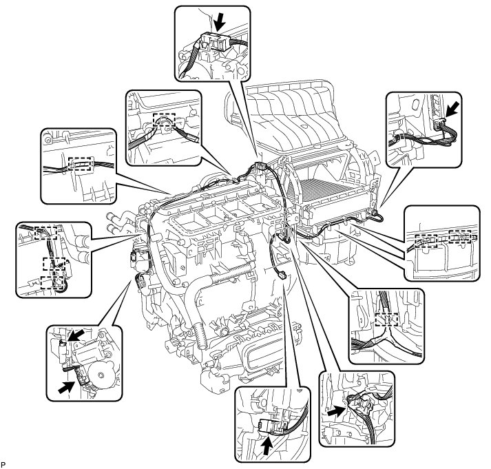 (a) Remove the 6 screws and air conditioning radiator assembly from the blower assembly with evaporator sub-assembly.