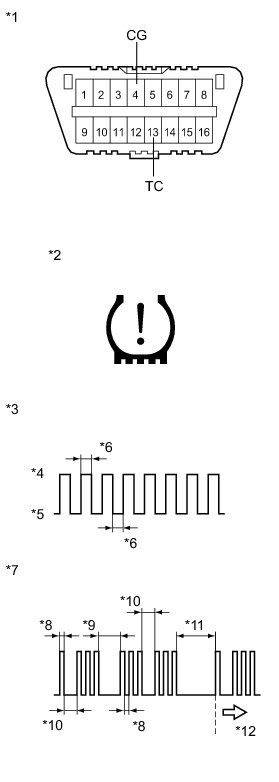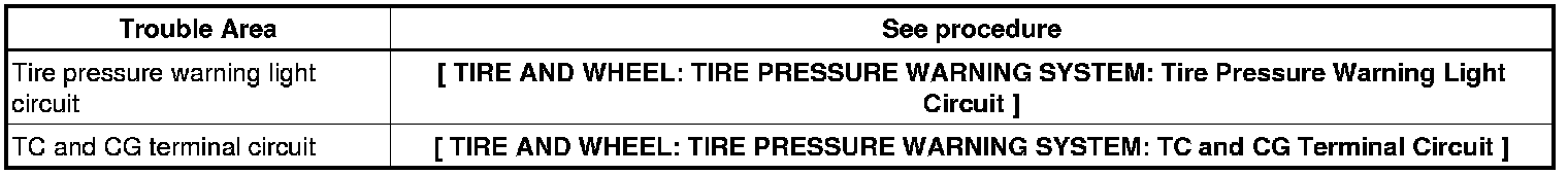 * If the tire pressure warning light does not indicate any DTCs or the normal system code, inspect the tire pressure warning light circuit or TC and CG terminal circuit.