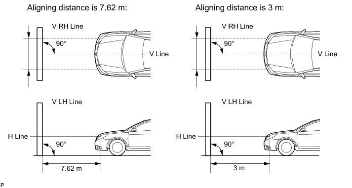 * Create a 7.62 m (25 ft.) distance between the vehicle (headlight bulb center) and the wall.