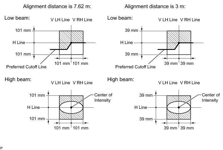 (2) V LH Line, V RH Line (Center mark position of left-hand (LH) and right-hand (RH) headlights):