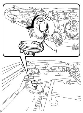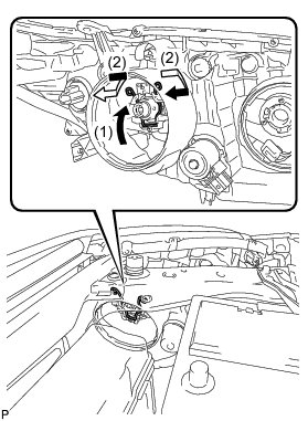 (a) Turn the socket of the light control ECU in the direction indicated by the arrow shown in the illustration to connect it.
