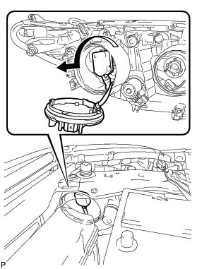 (a) Release the set spring and remove the discharge headlight bulb as shown in the illustration.