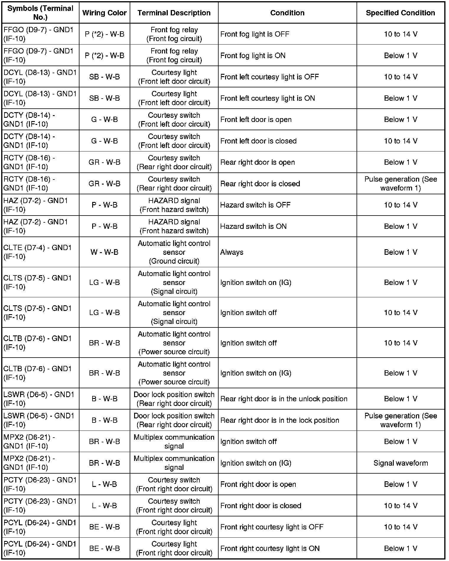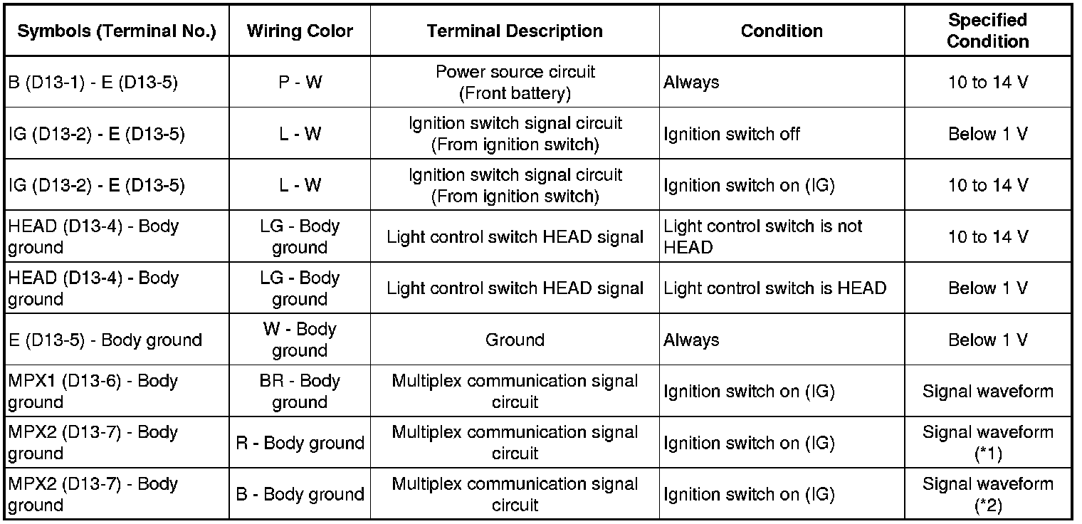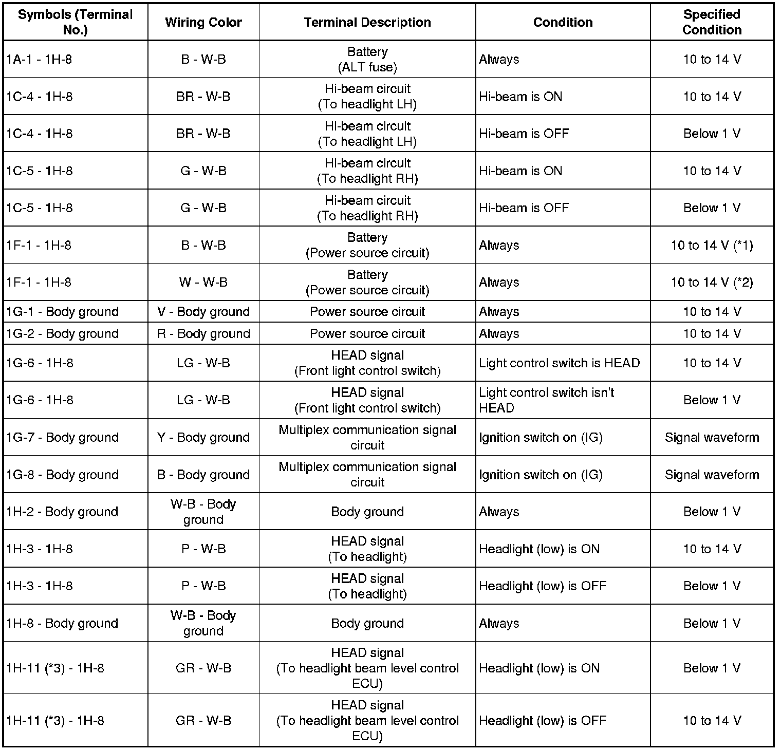 LIGHTING: LIGHTING SYSTEM: TERMINALS OF ECU