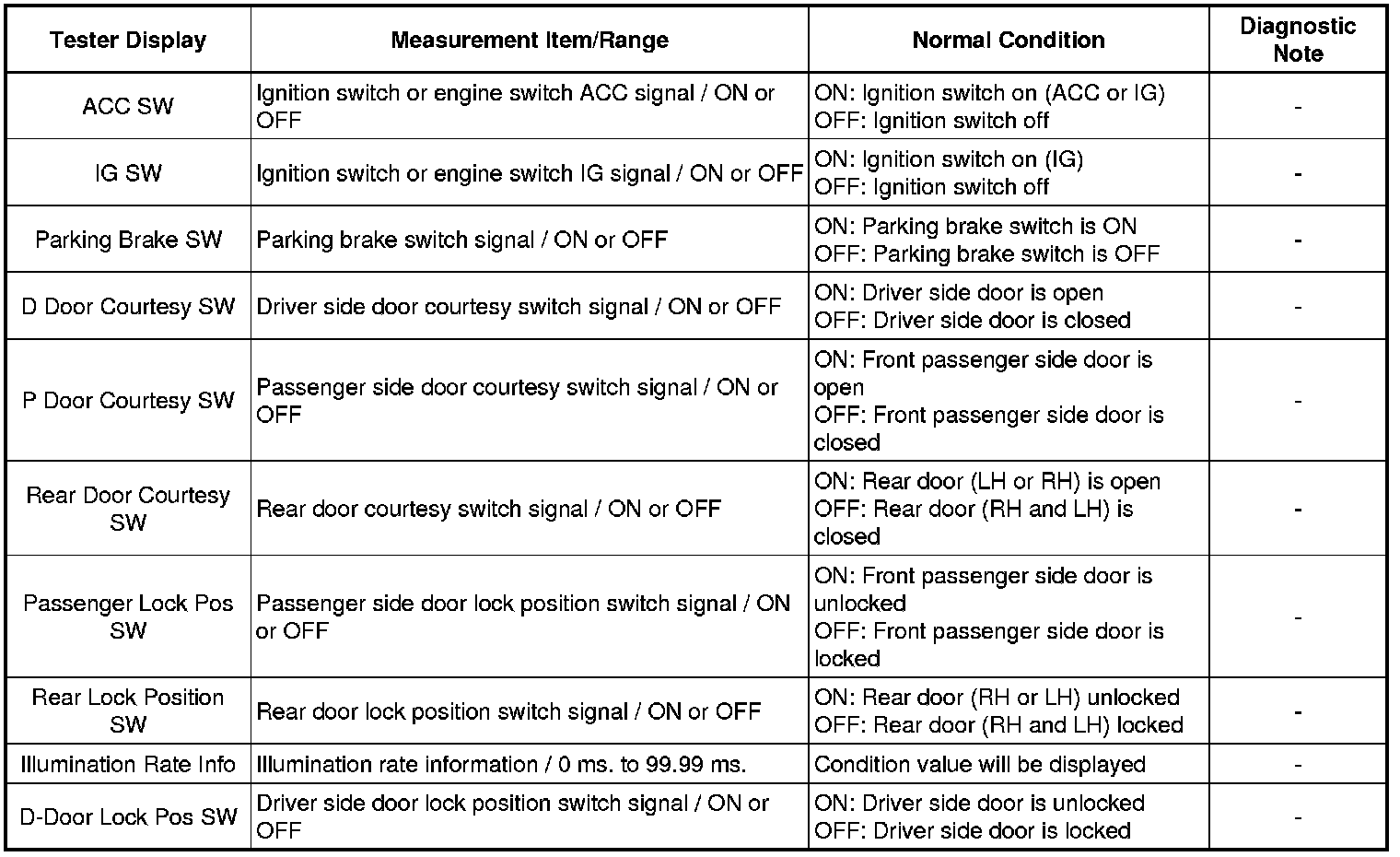 Using the Techstream DATA LIST allows switch, actuator and other item values to be read without removing any parts. Reading the DATA LIST early in troubleshooting is one way to save time.