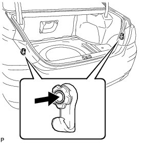 (a) Push the 2 pins and remove the 2 No. 1 luggage compartment trim hooks.