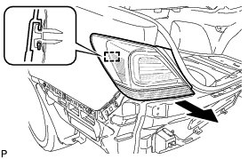 (b) Disengage the clip and remove the luggage compartment side tray assembly.