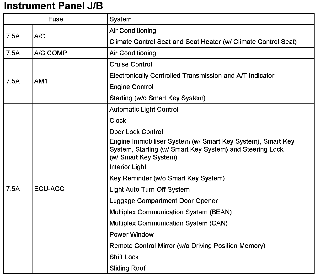 Instrument Panel J/B:
