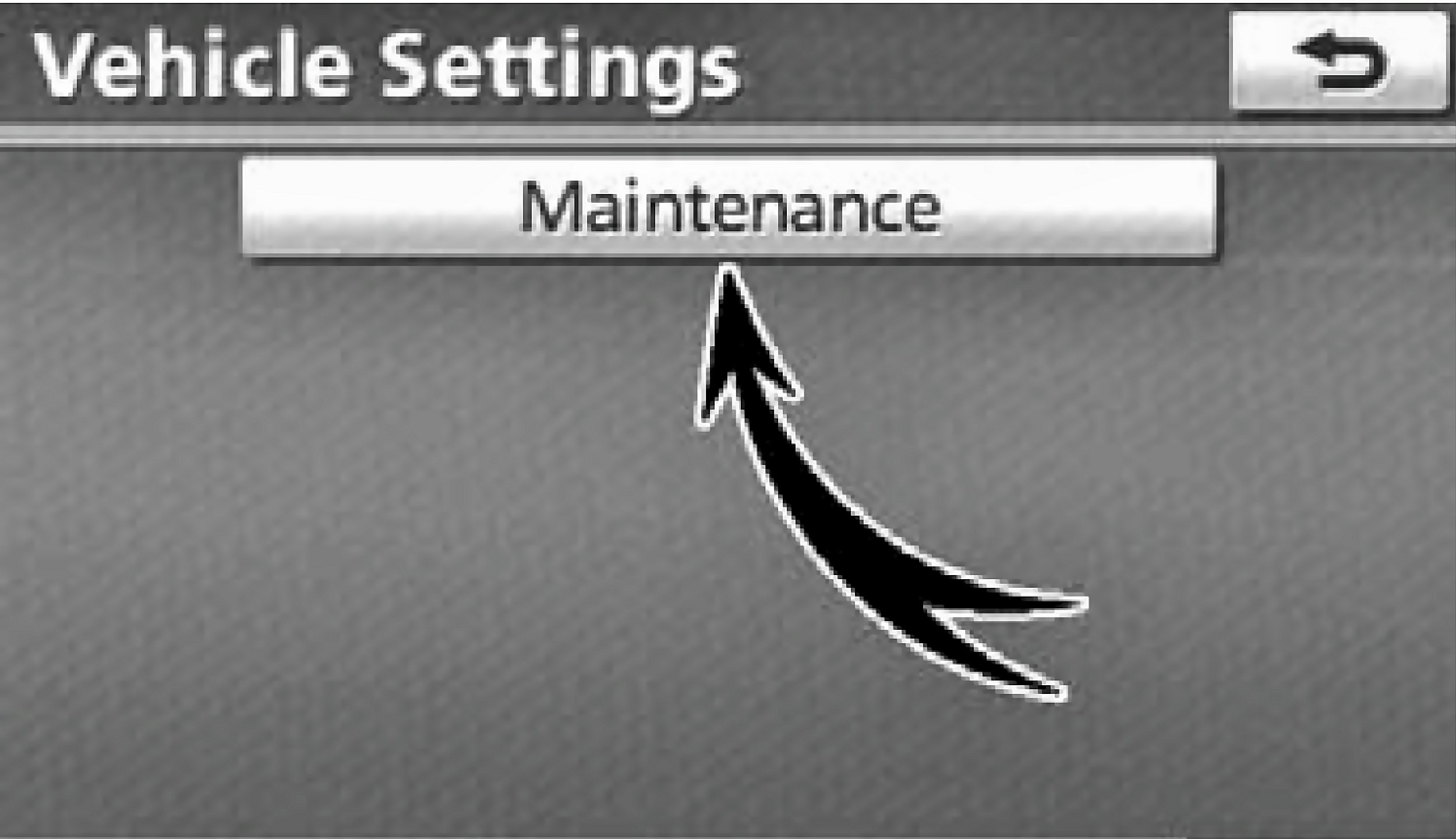 3. Touch "Maintenance" on the "Vehicle Settings" screen.