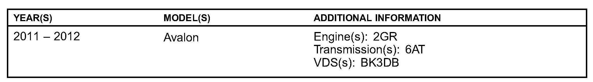 ^ 2011/2012 Avalon: