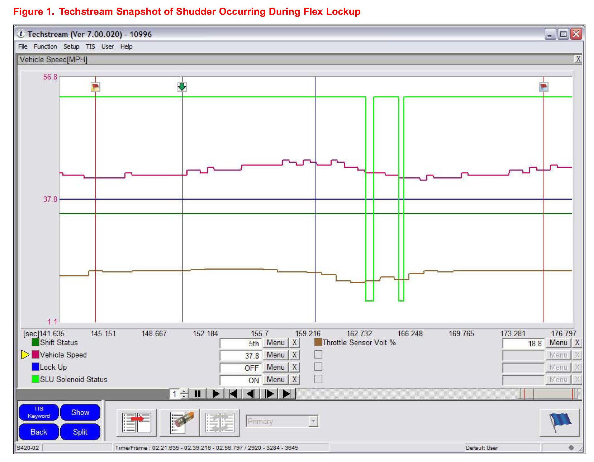 3. Use Techstream to take a snapshot when shudder is occurring to determine if it's occurring during flex lockup.