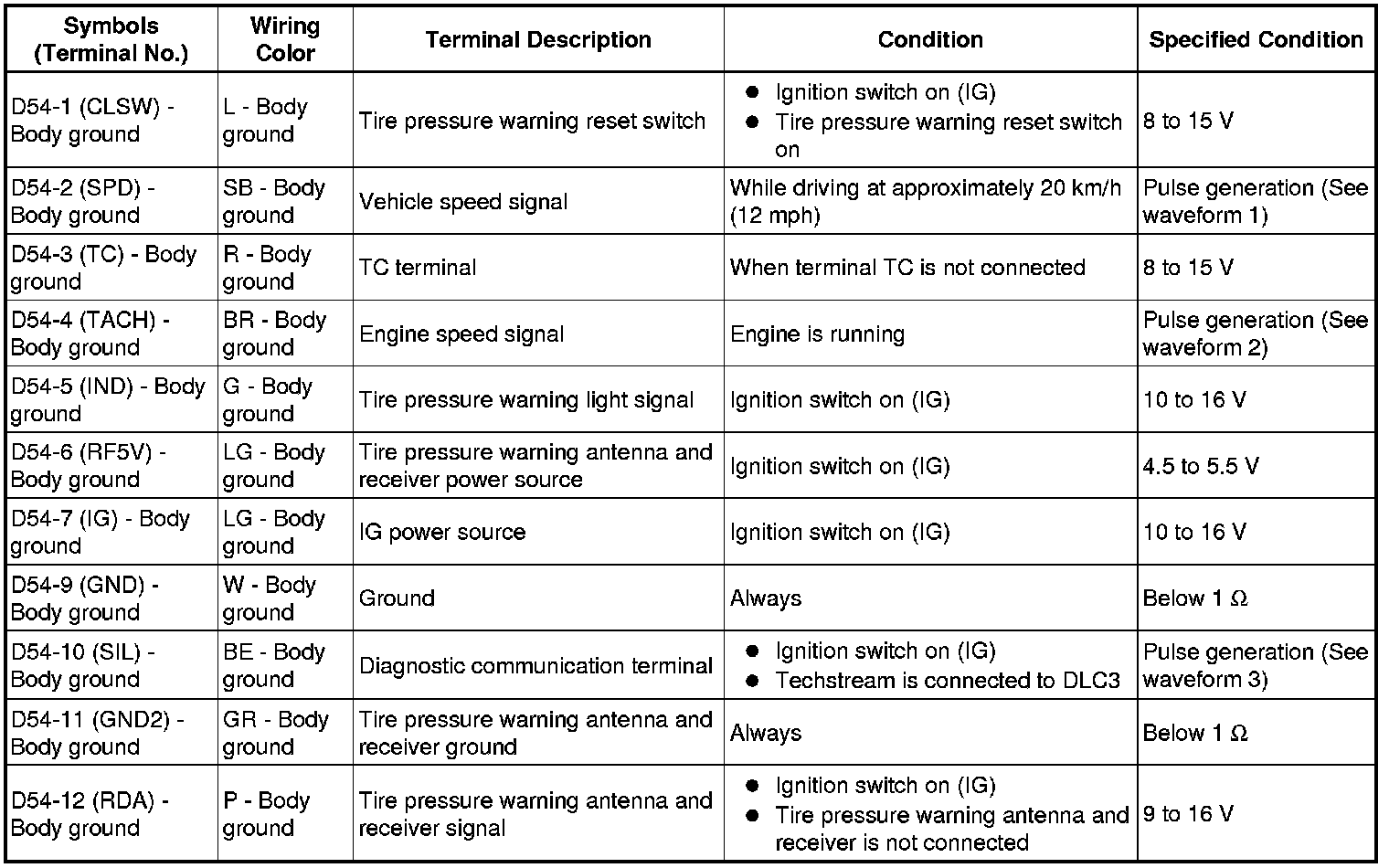 TIRE AND WHEEL: TIRE PRESSURE WARNING SYSTEM: TERMINALS OF ECU