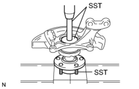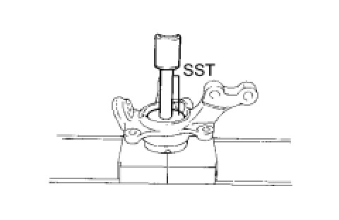 (a) Using SST and a press, install a new front axle hub LH bearing to the steering knuckle LH.