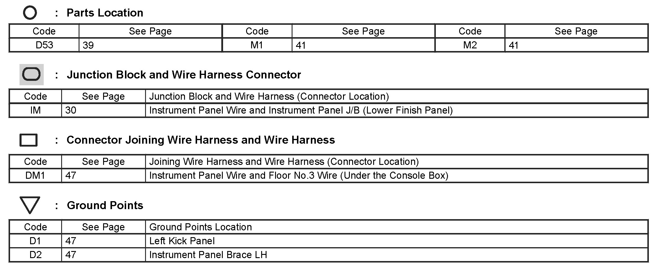 Locations: The locations of components, connectors, ground points, and splices referred to within these diagrams can be found at Vehicle Locations. Locations