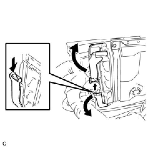(1) Raise the 2 levers while pushing the locks on the 2 levers, and disconnect the 2 ECM connectors.