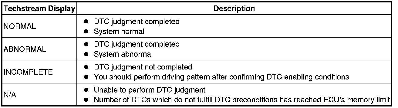 * With "All Readiness" you can check whether or not the DTC judgment has been completed by using Techstream.