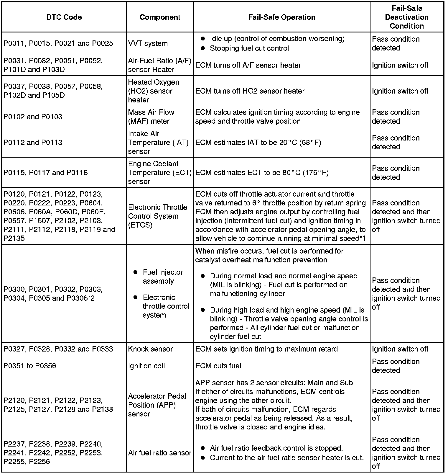 *2: Misfire related fail-safe operations occur when catalyst overheat malfunctions occur.