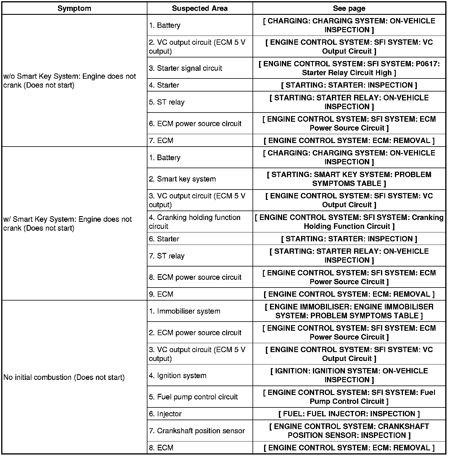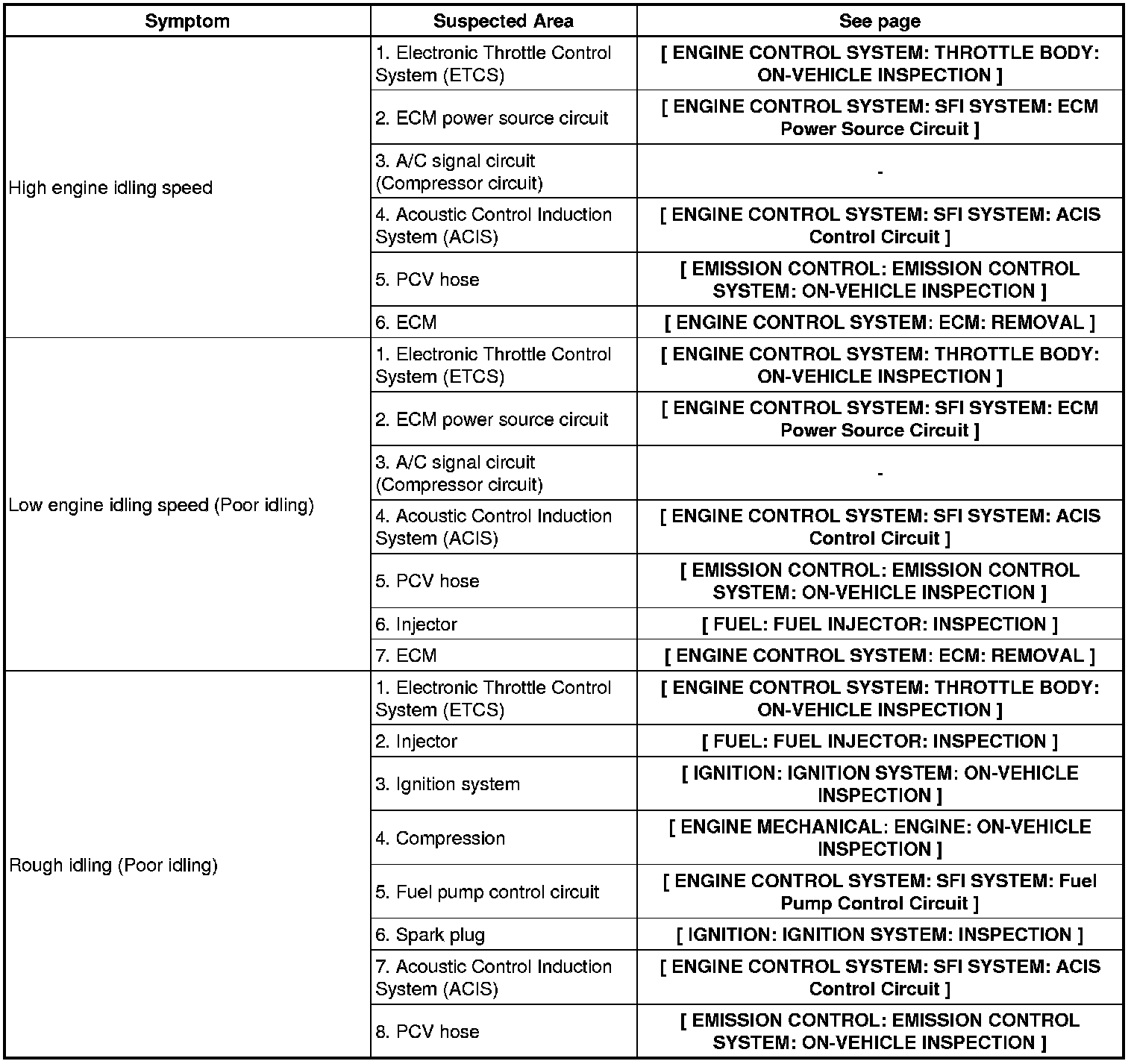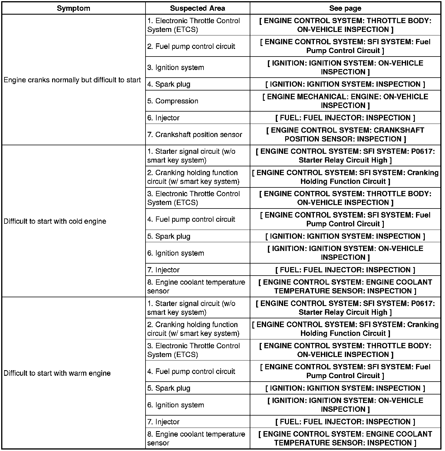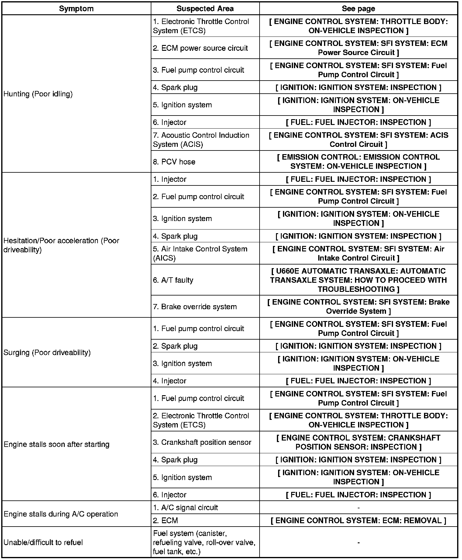 2GR-FE ENGINE CONTROL SYSTEM: SFI SYSTEM: PROBLEM SYMPTOMS TABLE