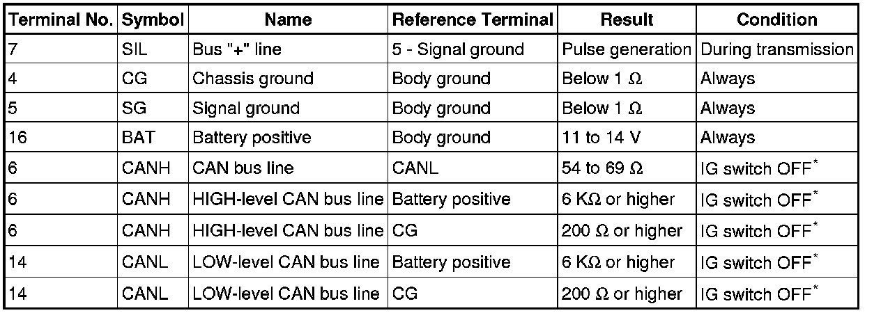 *: Before measuring the resistance, leave the vehicle as is for at least 1 minute and do not operate the ignition switch, any other switches or the doors.